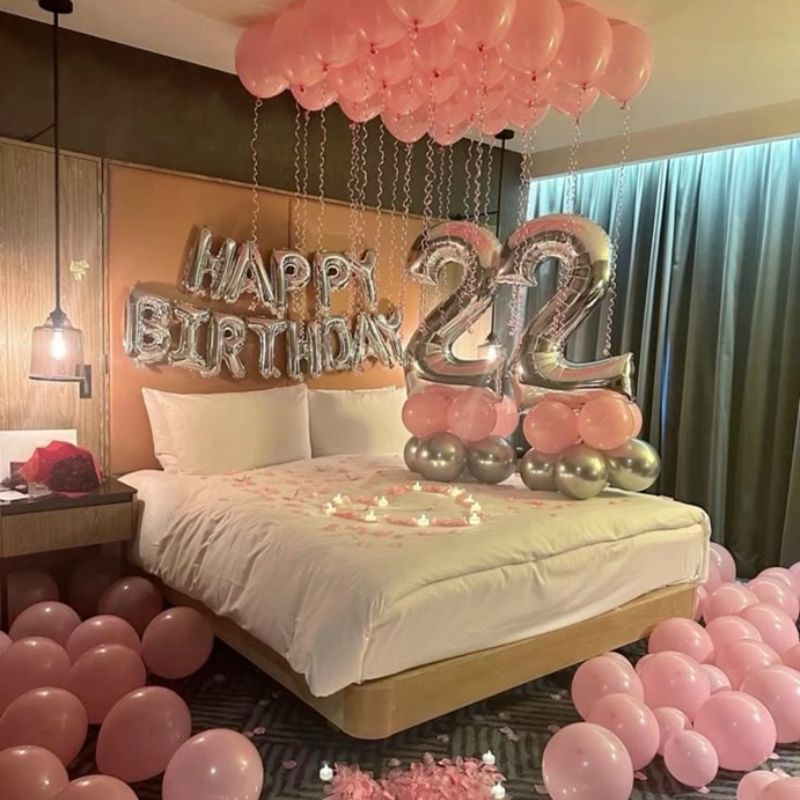 Transform your stay with rose petals, balloons, candles & more ✨🌹🎈. Customize it to your liking with cakes, champagne, or banners.